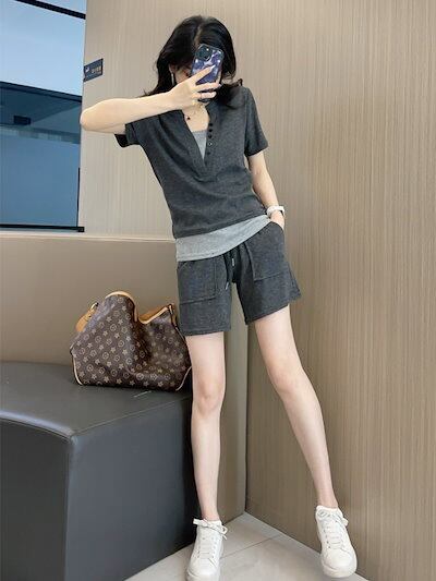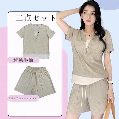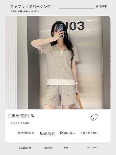 2024夏 着痩せ セット 二点セット 運動半袖 カジュアルショットパンツ 薄手 カジュアル ゆったり キャミソール ショットパンツ ルームウェア 韓国ファッション