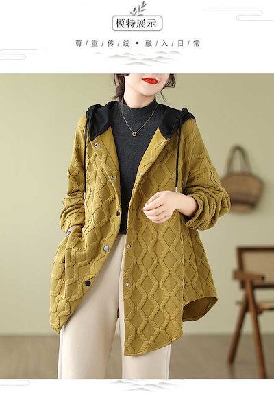 「ファットガール」 2024秋新品 ロングニット キルティング ニットカーディガン フード付き 大きいサイズ 体型カバー レディース ニットパーカー メガ割
