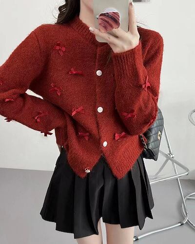 【 3日出荷 】カーディガン 2024 秋新ニットカーディガン ジャンパー コート レディース 秋冬 新しいスタイル 蝶ネクタイ ロングスリーブ ニットカーディガン