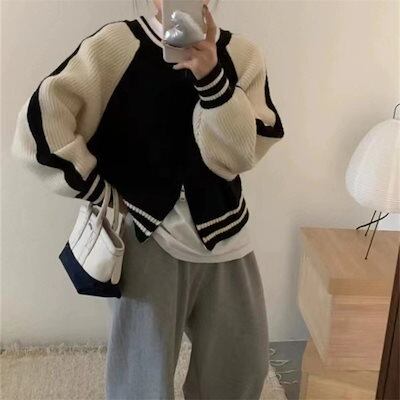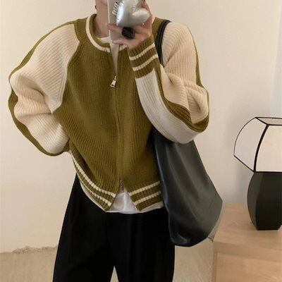 人气新作ニットカーディガン ダブルジップ ニットカーディガン コート レディース 流行りVネックベー 秋冬 新作 ルーズ トップス着痩せニットセーター日系秋アウター