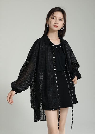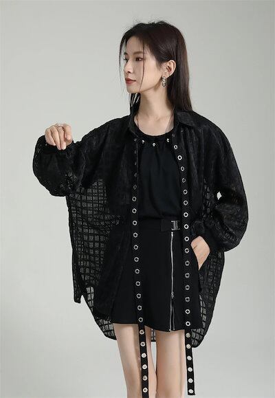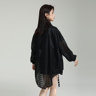 【J.Fashion】 前短後長 夏 カーディガン メッシュ ブラウス 日焼け止め シアーシャツ UVカット 半透明 おしゃれ 体型カバー レディース ブラウス ラッシュカット 水陸両用 メガ割