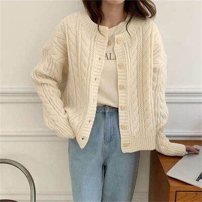 ニットカーディガンカーディガン レディース ニット 秋 冬 ケーブル編み ノーカラー ニットカーディガン カーデ コート アウター カシミアタッチ ニット セーター とろみ ショート丈 ゆったり 柔ら