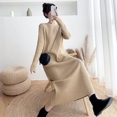 レディース ニット タートルネック ニットニットワンピース ロング 秋冬 韓国ファッション レディース ニット ロング 膝丈 A-C126
