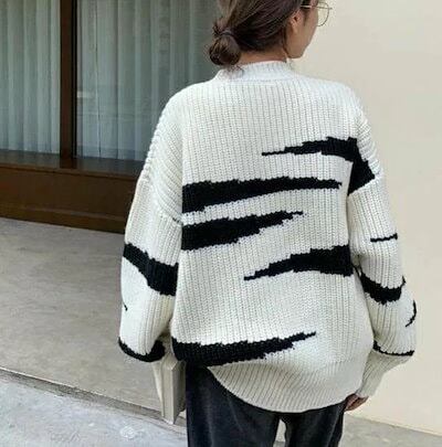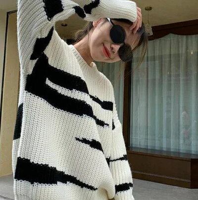 ニットセータートップスローゲージニットゼブラ柄アニマル柄レディースモノトーンゆったりスペシャルセールかわいいおしゃれお出かけデートディナーデイリーママコーデシンプルきれいめ高見え感上品カジュ
