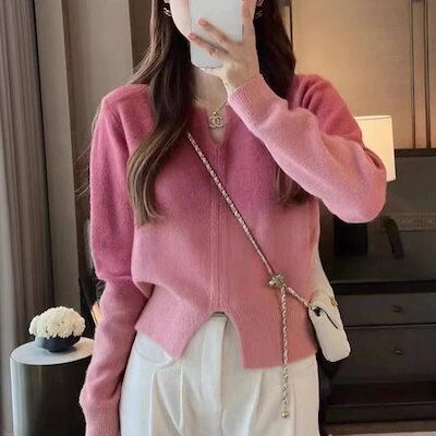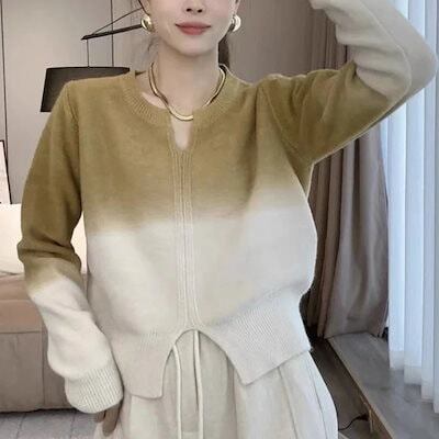 人気なリブニット ニッチデザイン イレギュラー 柔らかい セーター ゆったり ショート グラデーション ベ一シックニット プルオーバーデザイン トップス レディース