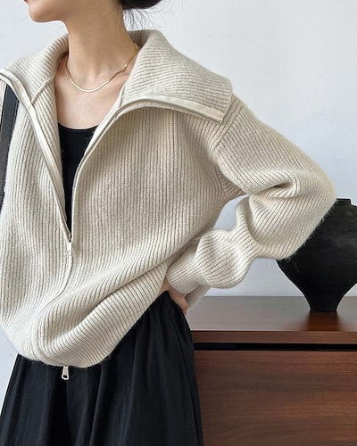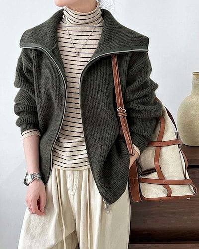 ニットジャケット レディース 立ち襟 コート ダブルジップ ニット カーディガン 体型カバー 長袖 ジップアップ ニットカーディガン セーター リブ ドロップショルダー ファスナー ゆったり