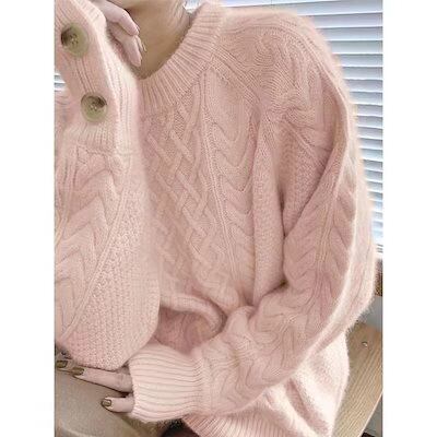 人気なリブニット 秋冬 ベーシックニット 2024新作 シンプル 無地ニットセーター レディース 厚手百掛け 丸ネック ツイストニット日韓ファッション トップス 冬 快適暖かい 長袖 トップス