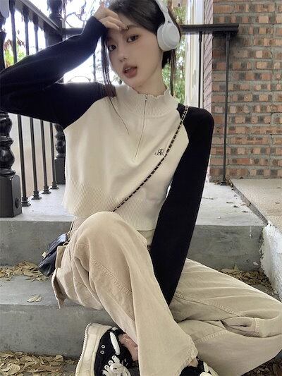 期?限定 トップス 長袖 ニット セーター レディース ショート おしゃれ カラバリハーフカラースタイルアップ 色っぽ 女っぽ カジュアル きれいめ 大人 ネック ファッション フェミニン 秋 冬 春