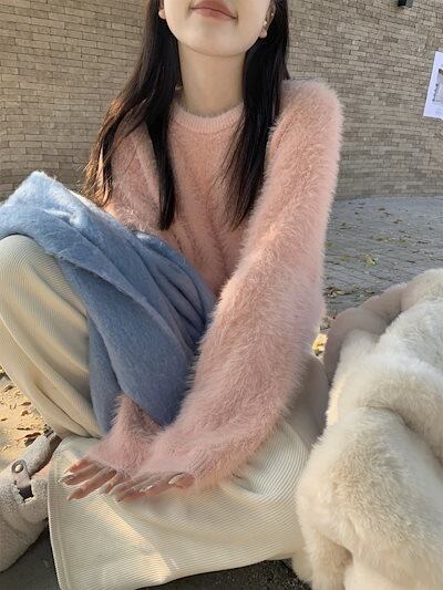 2024春夏 トップス 長袖 ニット セーター レディース ショート おしゃれ 秋冬春カラースタイルアップロンT色っぽ 女っぽスタンド ハイカジュアルきれいめV大人ファッション加工フェミニン かわいい