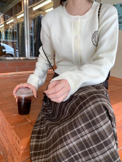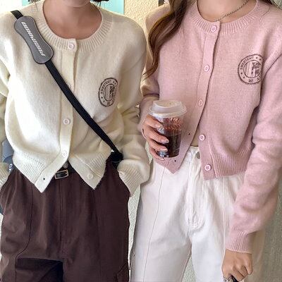 2024 春夏 トップス レディース 胸元プリント風 長袖 三色展開 カラバリ ベージュ ニット おしゃれ 可愛い 学生 秋 甘め 韓国ファッション