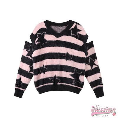 アレンジが楽しめる 2way サイズ ラインニット 半袖 長袖 セーター トップス ストリート カジュアル シルエット ファッション 色っぽ 女っぽ きれいめ ワイド 大人 Vネック ゆったり秋冬春