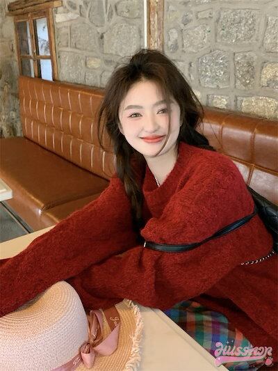 トップス ニット セーター ラウンドネック 長袖 ゆったり 編み模様 春 白 赤 韓国ファッション レディース おしゃれ かわいい カジュアル お出かけ
