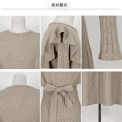 秋冬ファッション ニットワンピース レディース ショルダーフリル ニット ロングセーター 韓国ドレス