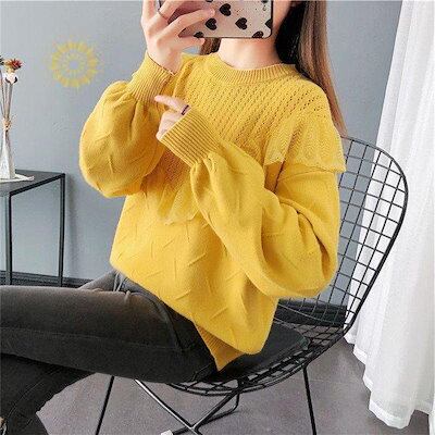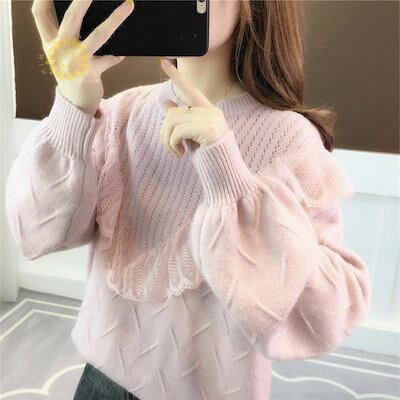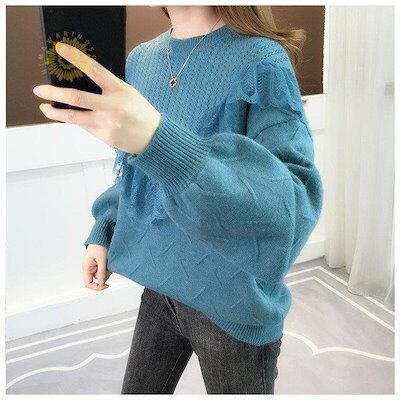 【beifengzh 0 ng】新作ニット セーター レディース ニットセーター 長袖 トップス レースフリル チュニック 大きいサイズ 体型カバー 秋 冬 定番 もこもこ コーデ 防寒 可愛い