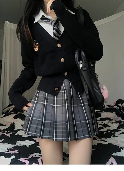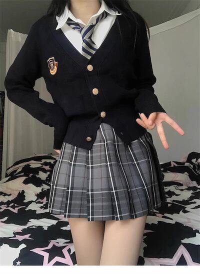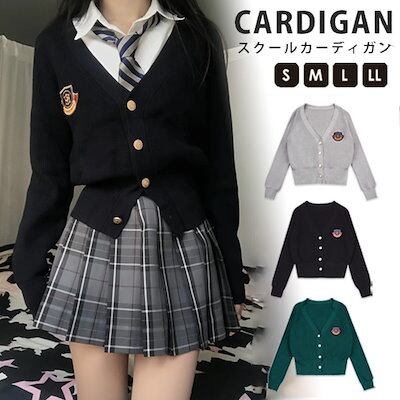 カーディガン レディース ショート丈 春 秋 ニットセーター 黒 スクール 制服 Vネック スクールセーター JK ワンポイント 学生服 前開き カーデガン 入学 通学 高校生 中学生 ブラック グ