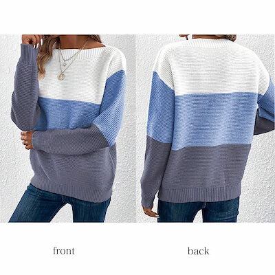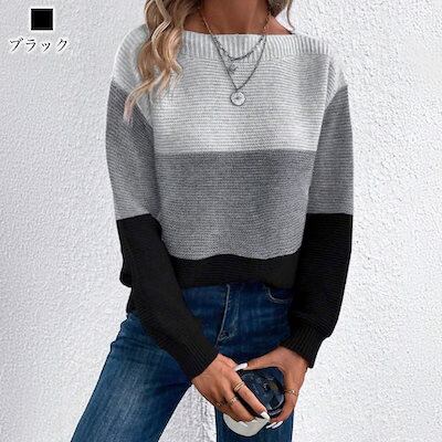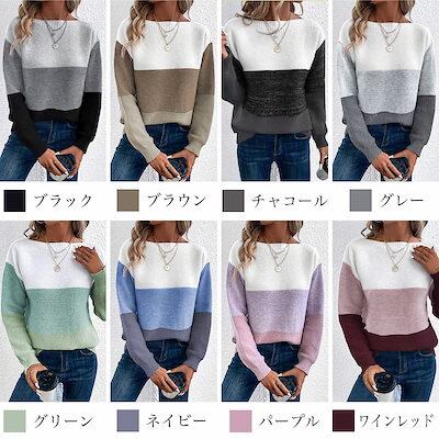 セーター レディース マルチカラーボーダーセーター クルーネック 長袖 Vネック ふわふわ ブランド 春 おしゃれ 人気 秋 タートルネック ノルディック ロング ざっくり 白 厚手 柄 ケーブル編み