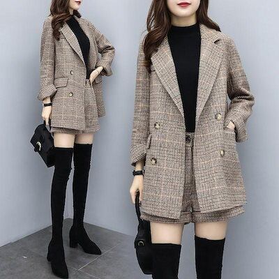 パンツスーツレディース卒業式服母40テーラードジャケットセットアップミニ丈ブレザー2点セットフォーマルチェック柄おしゃれ上品着痩せOL