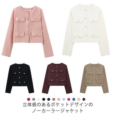 ノーカラー スーツジャケット レディース ショート丈 ノーカラージャケット スーツ ジャケット 母 春 秋 着痩せ シンプル カジュアル おしゃれ 春秋 フォーマル 通勤 OL フォーマル 入園式 入