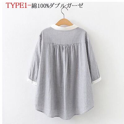 シャツブラウス レディース スタンドカラー シャツ ブラウス トップス フレンチスリーブ コットン100% 無地 白シャツ ストライプ チェック シンプル 大きいサイズ 体型カバー ゆったり 通勤 夏