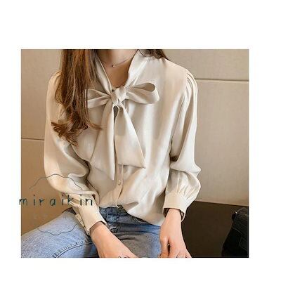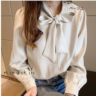 新入庫 ブラウス レディース 春 夏 春夏 トップス 白 ボウタイ チュニック 長袖 Yシャツ ホワイト イー ベージュ グリーン 20代 30代 40代 ママ 母 OL