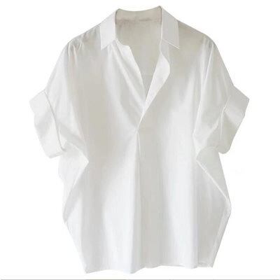 シャツ レディース 夏 オシャレブラウス カジュアル 可愛い 白 半袖トップス おしゃれ 上品 通勤 OL ゆったりシャツ