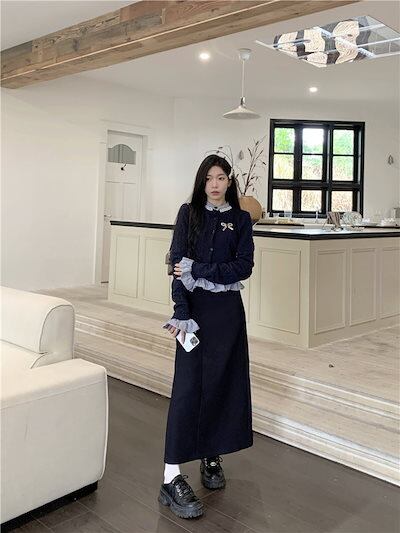 2024秋冬トップス シャツ ニット ボタン 重ね着風 二枚重ね 長袖 ゆったり 秋 おしゃれ かわいい キュート 甘め 韓国系ファッション レディース お出かけ丈