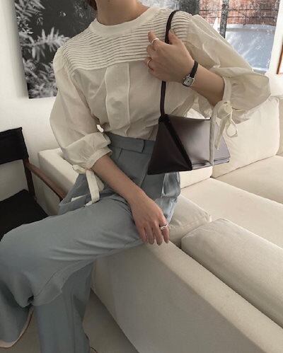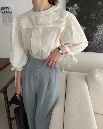 2024秋冬トップス シャツ リボン ラウンドネック プリーツ 長袖 ゆったり 秋 白 茶色 おしゃれ かわいい ガーリー キュート 甘め 韓国ファッション レディース お出かけ