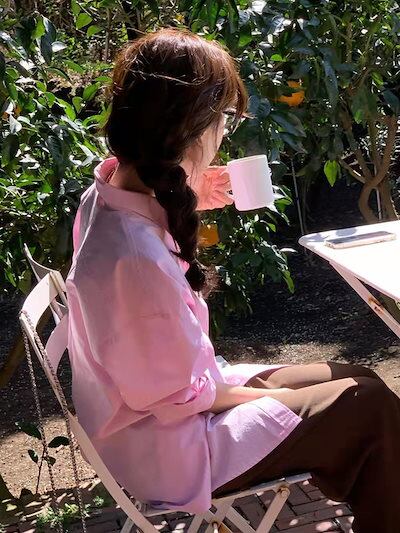 2024秋冬トップス シャツ 襟 スタンダードカラー ストライプ ボタン 長袖 ゆったり 秋 白 青 水色 おしゃれ かわいい 韓国ファッション レディース お出かけ
