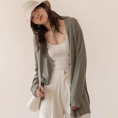 カーディガン ニットカーディガン新型薄手ゆったり韓国 紫外線対策 長袖アウタートップスラッシュ