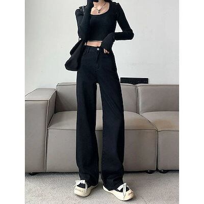 デニムワイドパンツ 秋新作 ワイドパンツ ジーパン 垂下感 簡単な カジュアル 韓国ファッション 百掛け やせて見える