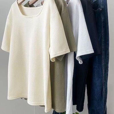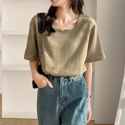 Tシャツ スクエアネック半袖Tシャツ夏服 新型 通勤 ゆったり 百掛け トップス Tシャツカットソー