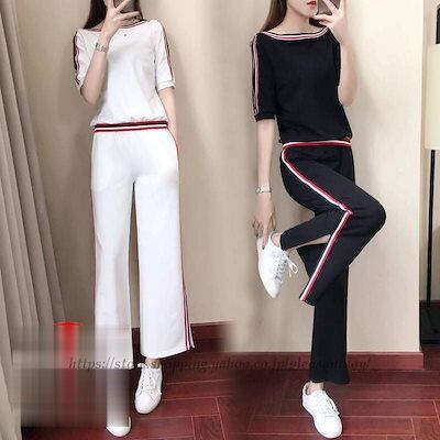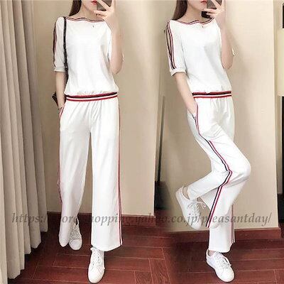 セットアップ レディース トップス ガウチョパンツ 上下セット スウェット 2点セット ウエストゴム 体型カバー 大きいサイズ