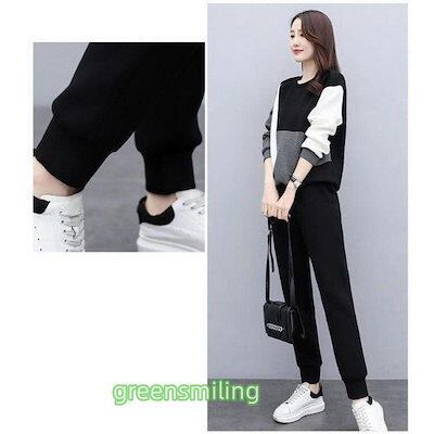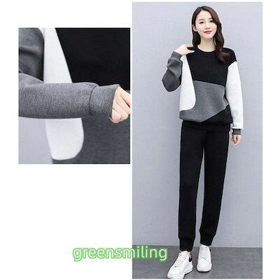 セットアップ レディース 秋冬 配色スウェットセット スポーツウェア 長袖レーナー ロングパンツ 2点セット 運動着/部屋着 カジュアル ジャージ 大きいサイズ