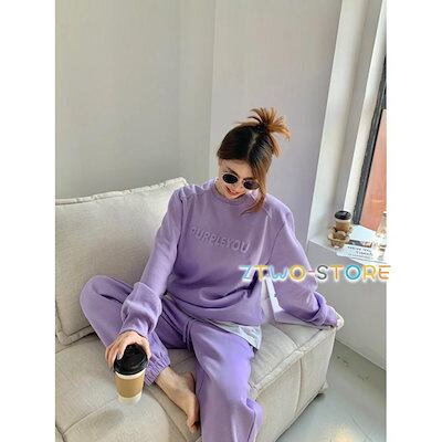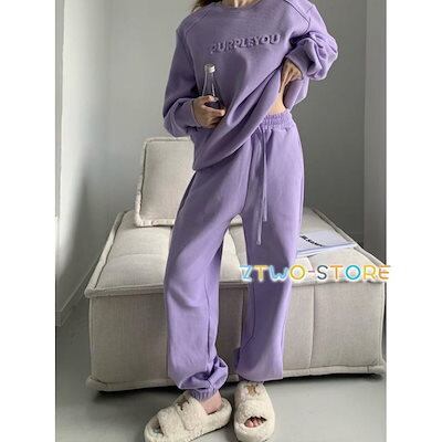 上下セット レディース セットアップ ジャージ 長袖 裏起毛 防寒 暖かい トレーナー ロングパンツ 部屋着 ルームウェア 運動着 普段着