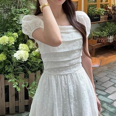 2024春夏ワンピース 半袖 ロング丈 オフショルダー スクエアネック Aライン フレア ゆったり 細見え 夏 白 ホワイト おしゃれ かわいい 甘め キュート ラブリー 韓国ファッション レディース