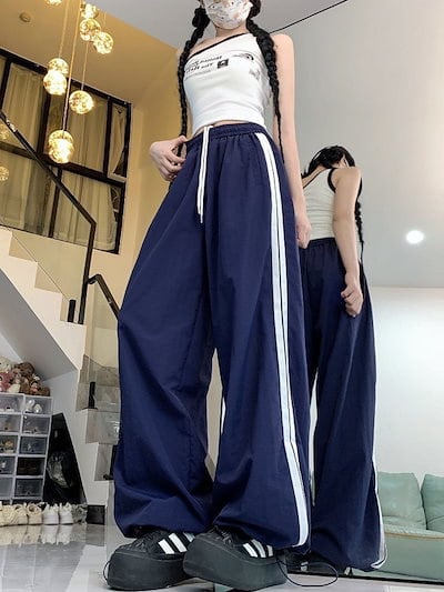 2024 夏 韓国パンツ ロング丈 ウエストゴム ストライプ ワイド ストレート ハイウエスト 美脚効果 脚長効果 細見え 夏 白 黒 赤 おしゃれ かわいい 韓国ファッション レディース お出かけ