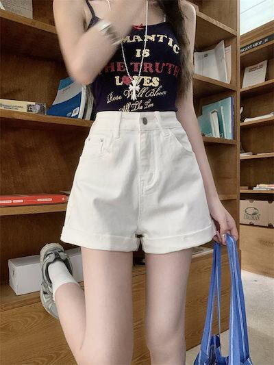 2024 春夏パンツ ショート丈 デニム ジーンズ ワイド ハイウエスト 美脚効果 脚長効果 細見え 夏 白 黒 おしゃれ かわいい 韓国ファッション レディース お出かけ