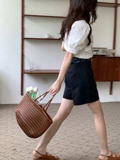 2024 春夏パンツ ハーフパンツ ワイド ハイウエスト 美脚効果 脚長効果 細見え 夏 緑 黒 白 水色 おしゃれ かわいい 韓国ファッション レディース お出かけ