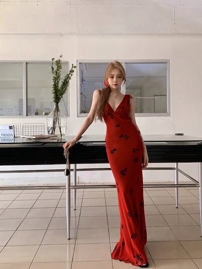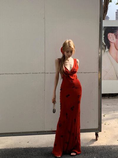 2024春夏 ワンピース ロング丈 ゆったり Vネック キャミソール ハイウエスト かわいい カジュアル おしゃれ 夏 ファッション フィッシュテールフレンチお出かけ