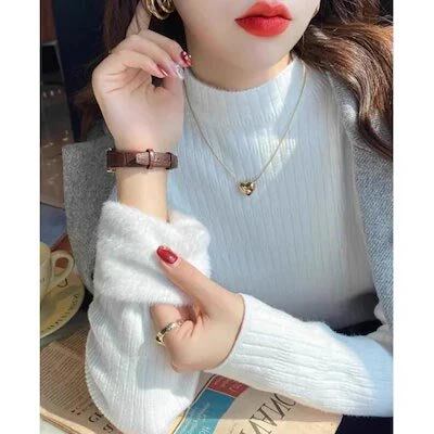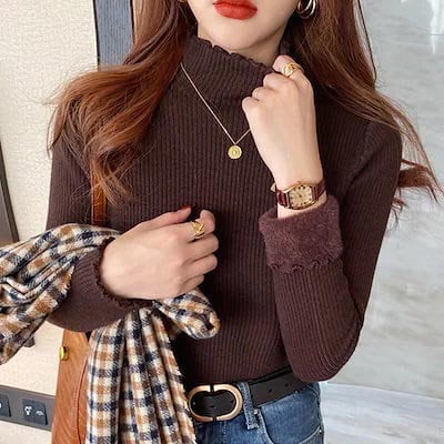 【2枚購入で200円OFF】秋冬裏起毛4TYPEレディースカットソーニットセーター保温暖かい上質リブタイトシルエットストレッチカットソートップス
