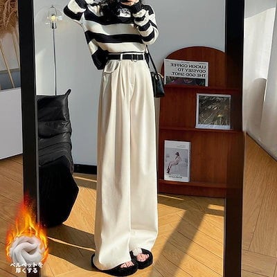 ワイドパンツ 秋冬 裏起毛 パンツ レディース ロングパンツ 微起毛 ガウチョパンツ 体型カバー パンツ ストレートパンツ ロング ロング丈パンツ コーデュロイ 秋物 裏起毛 ウェストゴム ポケット付