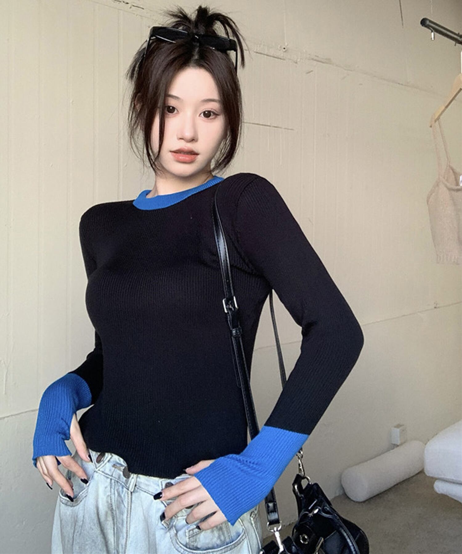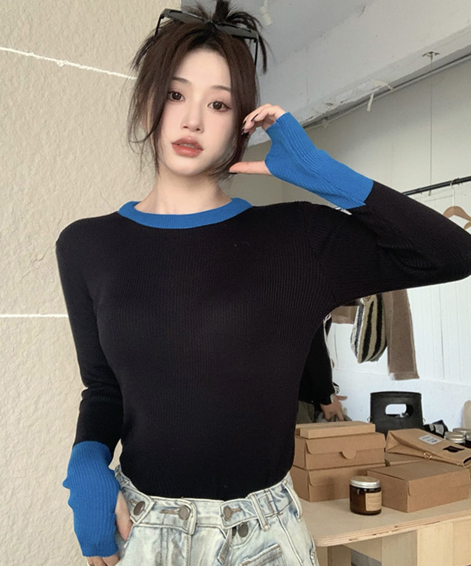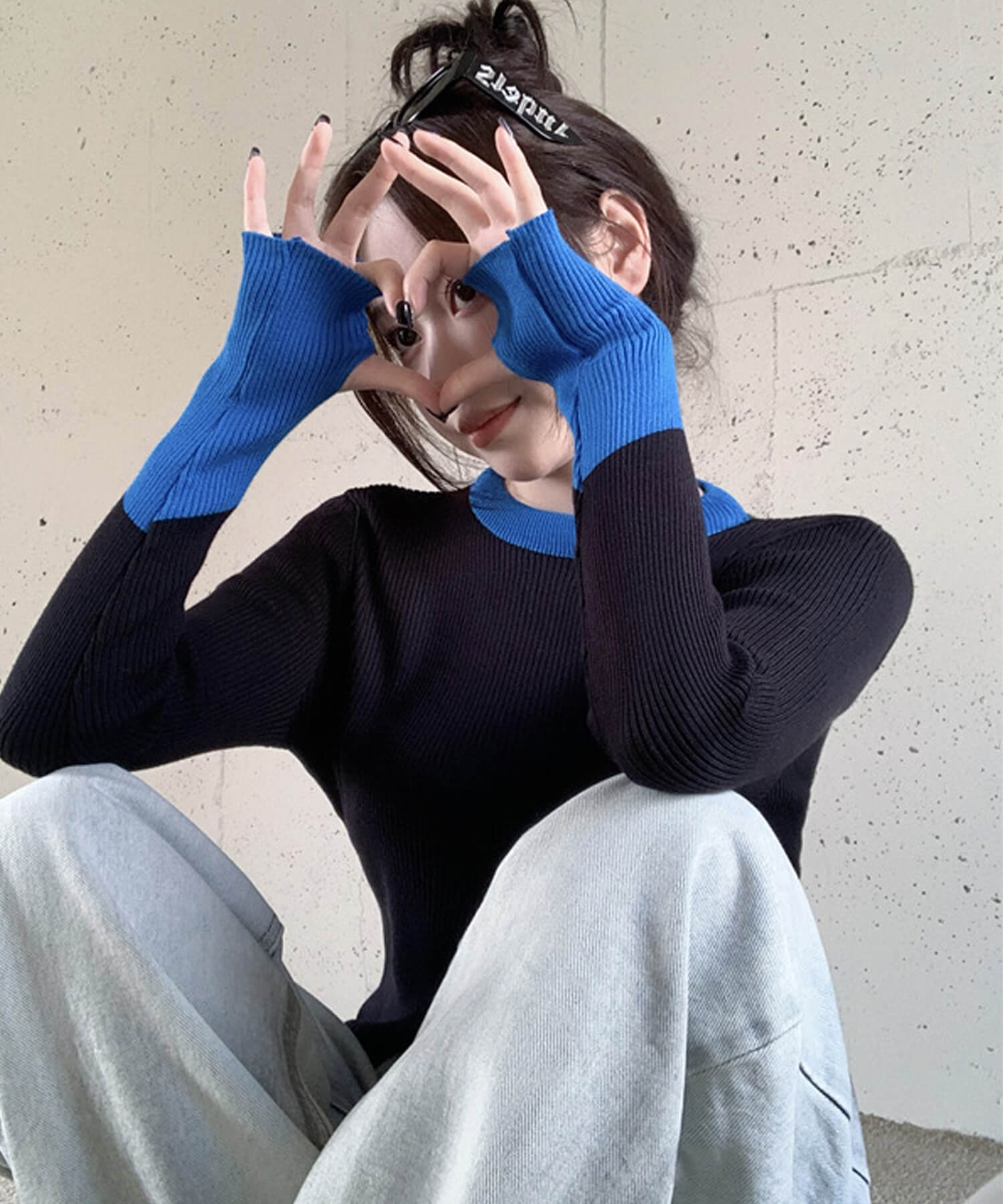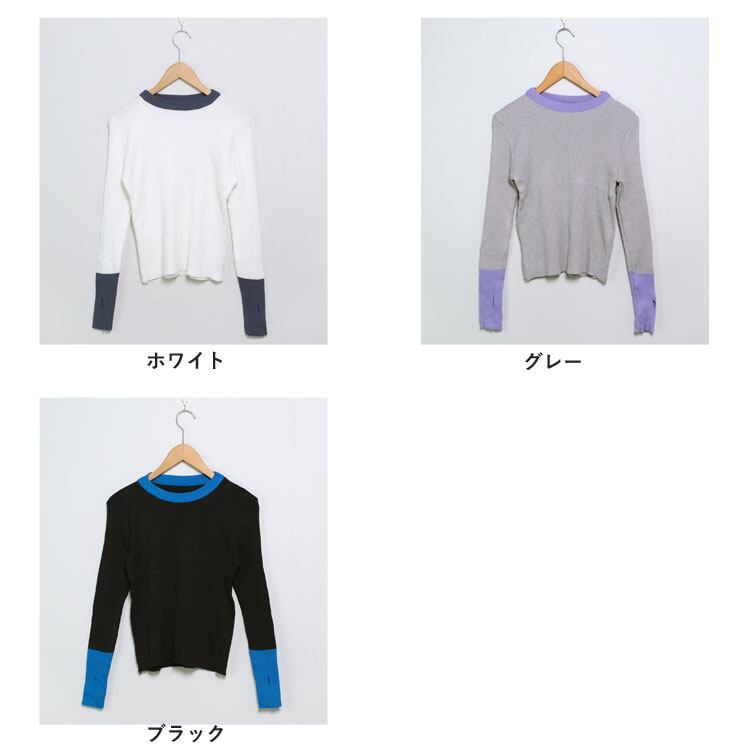 フィンガーホール 配色 リブニット ma 【即納】 指穴ニット レディース 韓国 プチプラ おしゃれ