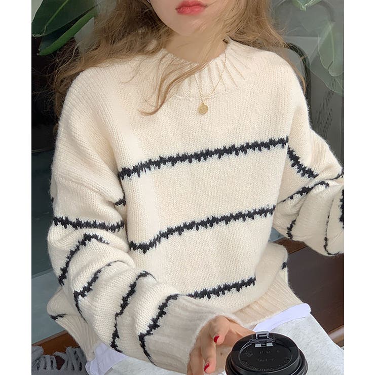 【日本倉庫即納】ボーダーニットセーター レディース 長袖 韓国ファッション
