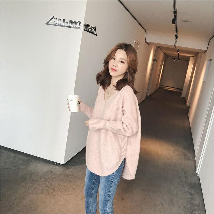 【日本倉庫即納】Vネックチュニックニット 韓国ファッション 2024秋冬新作