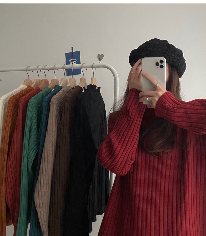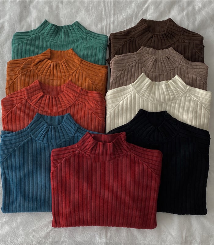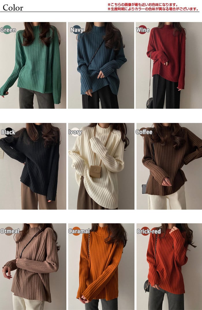 ハイネック 太リブ編み