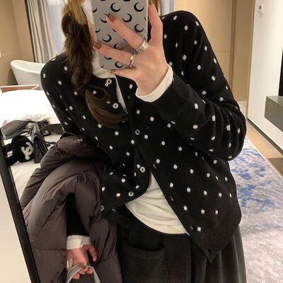 カーディガン 新しいラウンドネック小さな水玉模様のジャカードニットカーディガンジャンパーレディース
