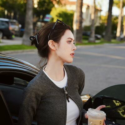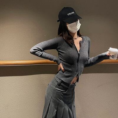 2024 春夏 カジュアル タイトジッパー カーディガン レディース セーター ニットトップス ファスナー付きカーディガン