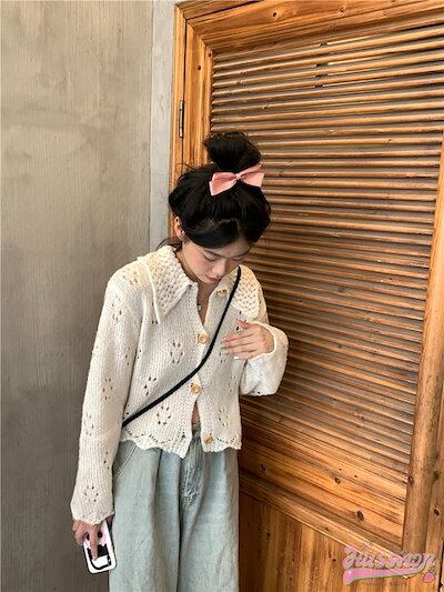 2024春夏トップス ニット 二枚重ね風 重ね着風 カーディガン Vネック ボタン 長袖 春 ゆったり グリーン 緑 韓国ファッション レディース おしゃれ かわいい カジュアル お出かけ