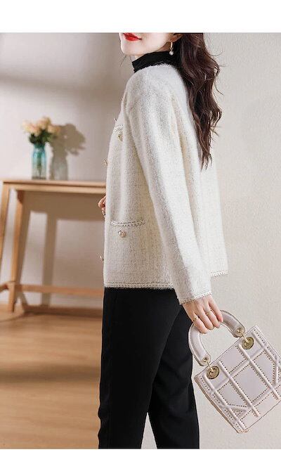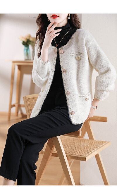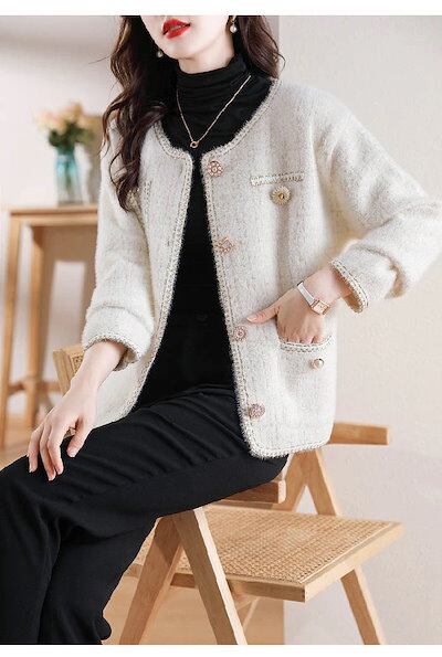 カーディガン レディース 秋 冬 長袖 ニットカーディガン ツイード調 ふわふわ もこもこ セーター さっと羽織れる ニット羽織 ゆったりフェミニン 着回し シンプル カジュアル 体型カバー 柔らかい
