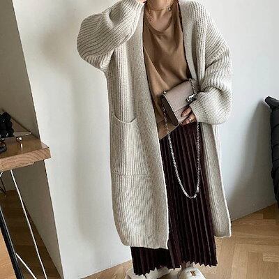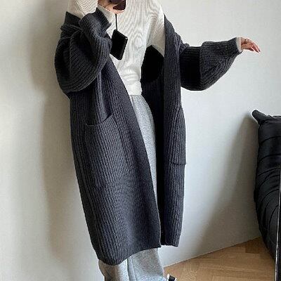 カーディガン ロング レディース 秋冬 ニットカーディガン ロング丈カーデ 畦編みニット コート アウター ニット セーター とろみ ロングカーディガン ゆったり 柔らか カジュアル 体型カバー